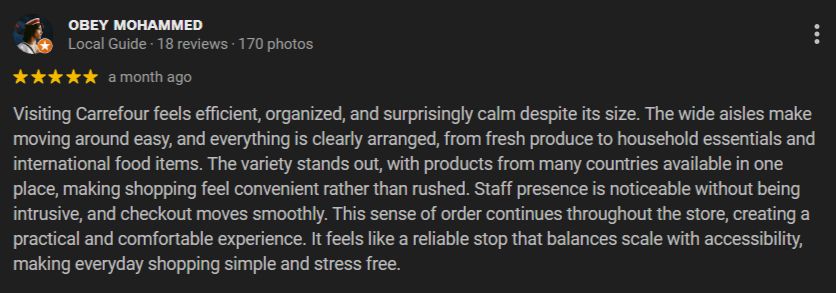 - Same Carrefour Quality: Despite its size, it offers a great selection of products.